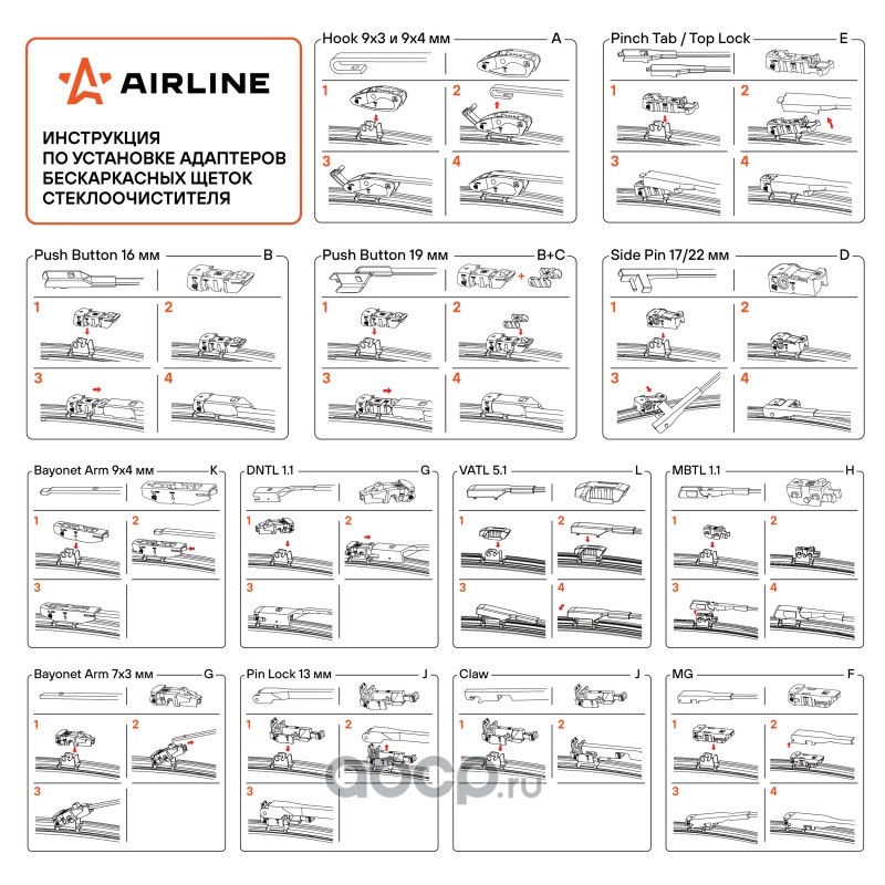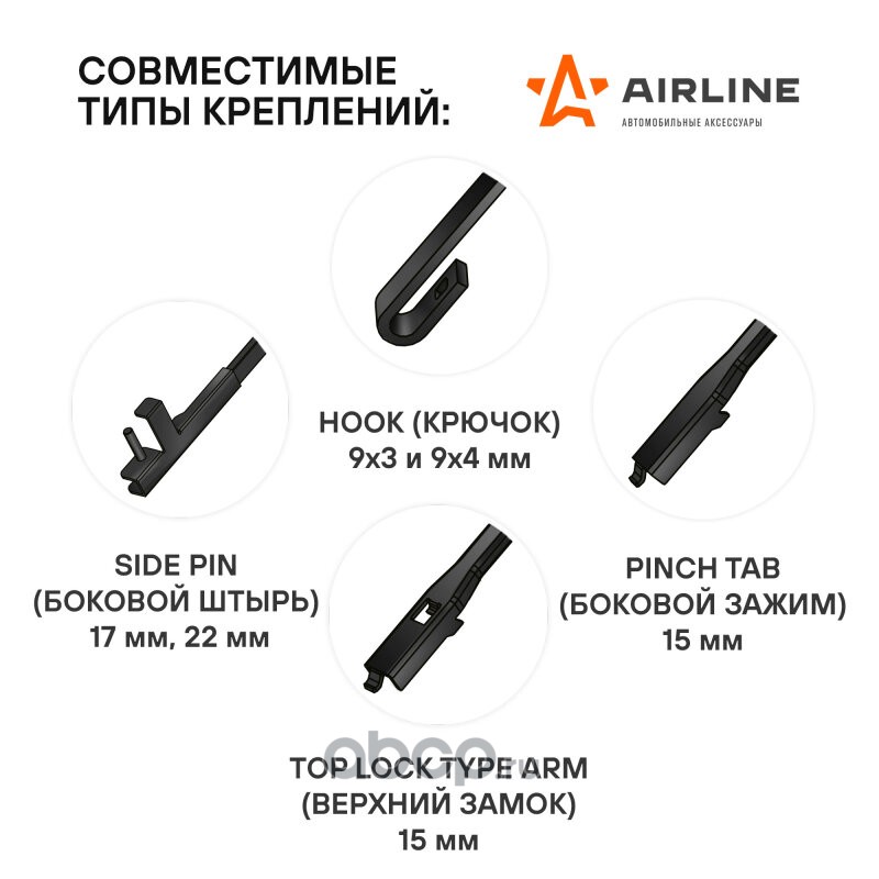 Щетки стеклоочистителя 550/450мм (22""/18"") бескаркасные для а/м Opel Astra H (04-14), Fiat Albea (02-12), Mitsubishi Pajero Sport (08-18), Changan CS35 Plus (18-20), Chery Tiggo 7 Pro (20-), комплект, 4 типа адаптеров
