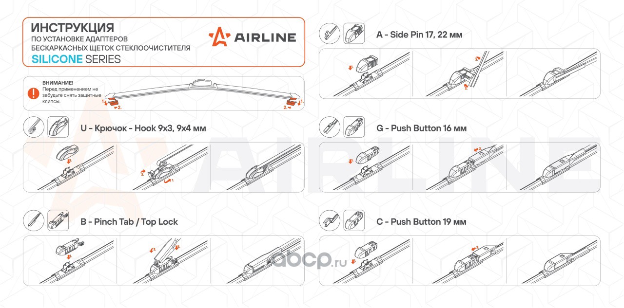 Щетка стеклоочистителя бескаркас SILICONE 450мм (18") 5 адаптеров