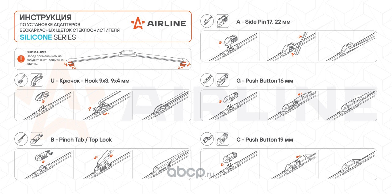 Щетка стеклоочистителя бескаркасная SILICONE 450мм (18") 5 адаптеров
