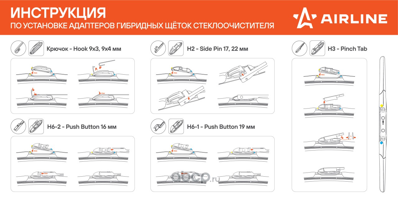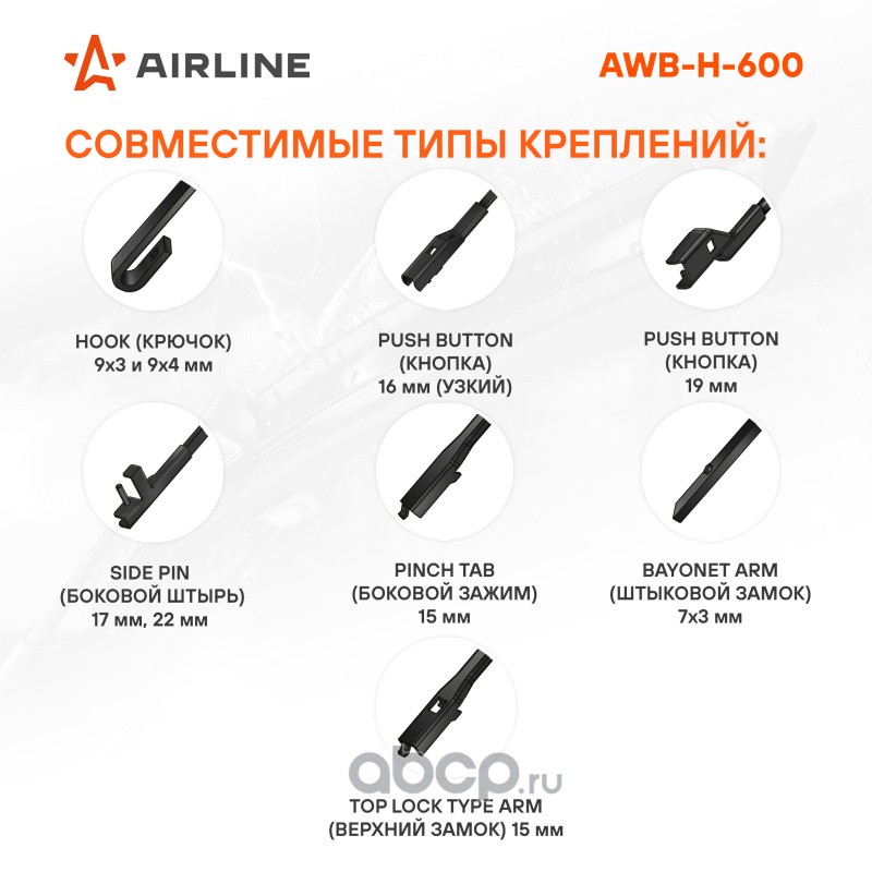 ДЕТАЛИУС | D911010 | Комплект гибридных щеток стеклоочистителя 600 mm + 450 mm (Тип адаптера - Push Button 19mm) |