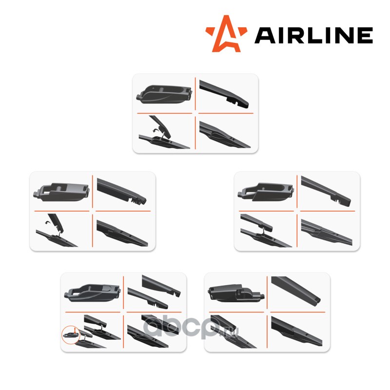 Щетка стеклоочистителя 380 мм (15"") задняя каркасная, 5 адаптеров
