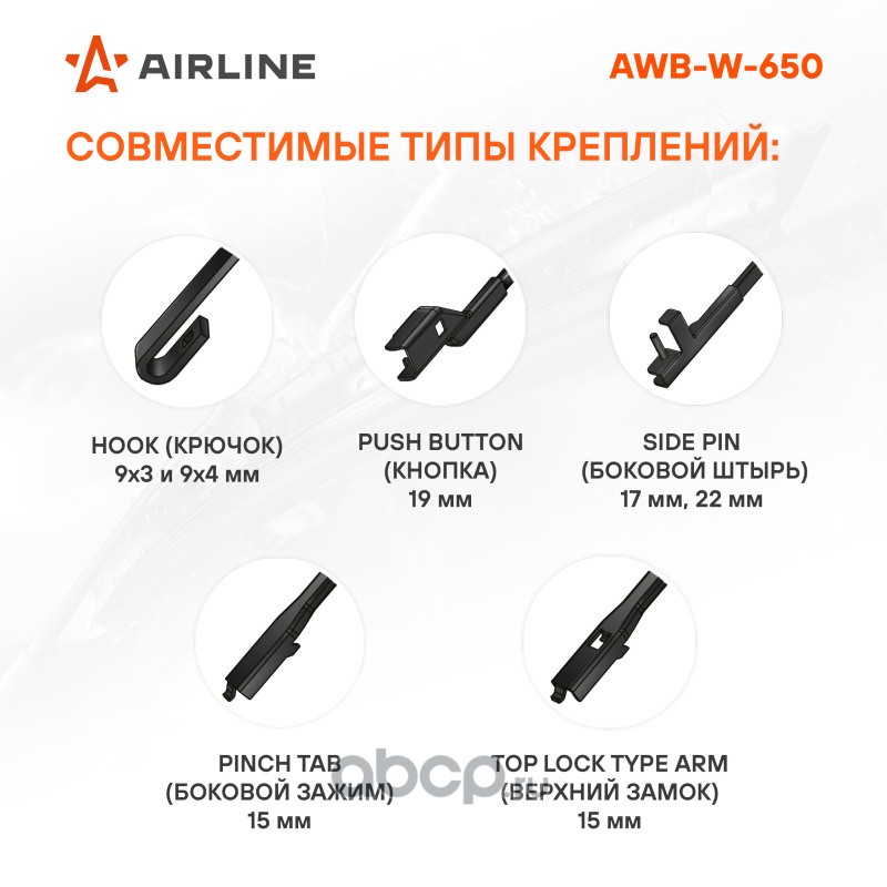 Щетка стеклоочистителя зимняя 650мм (26"") 5 адаптеров