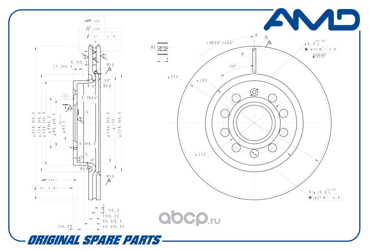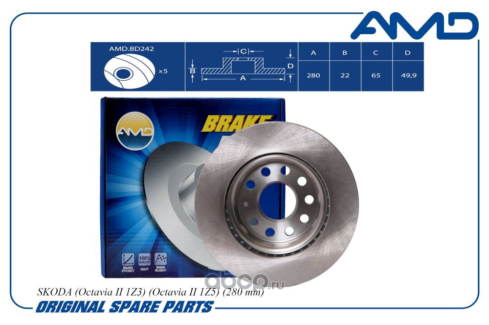 Диск переднего тормоза 1K0615301AC/AMD.BD242 (280 mm) AMD