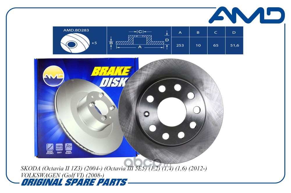 Диск заднего тормоза 1K0615601AB/AMD.BD283 (253mm) AMD