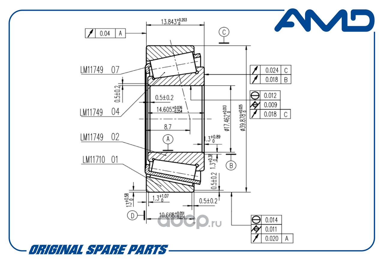 Подшипник ступицы задней внутренний 94535218/AMD.BER26 AMD
