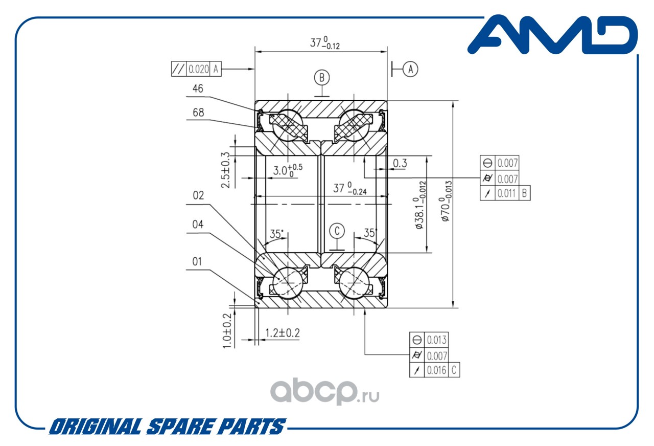 Подшипник ступицы передней 51720-02000/AMD.GH038021 (без магнит. кольца ABS) AMD