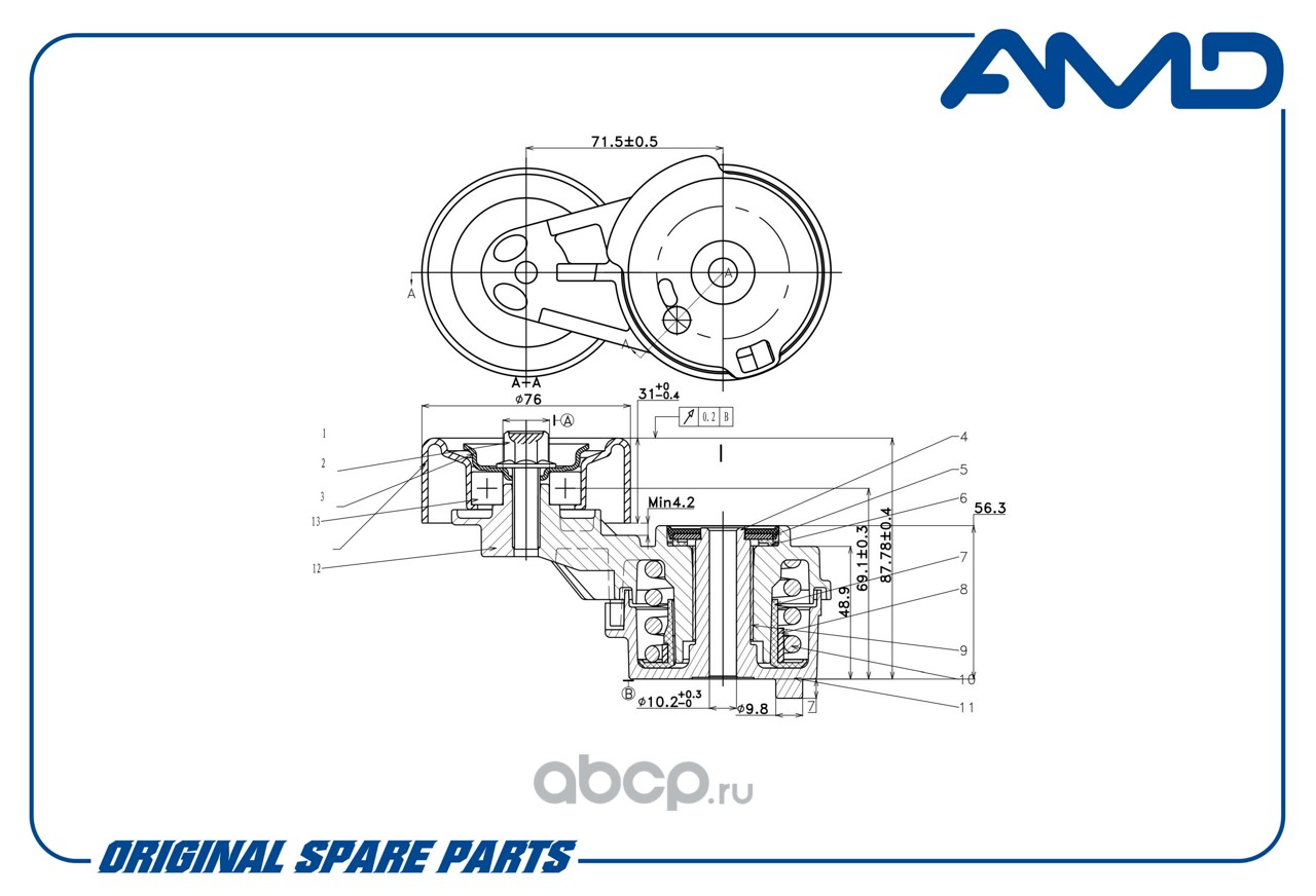 Ролик ремня поликлинового, натяжной 25281-2B010/AMD.GTI39210 (с натяжителем) AMD