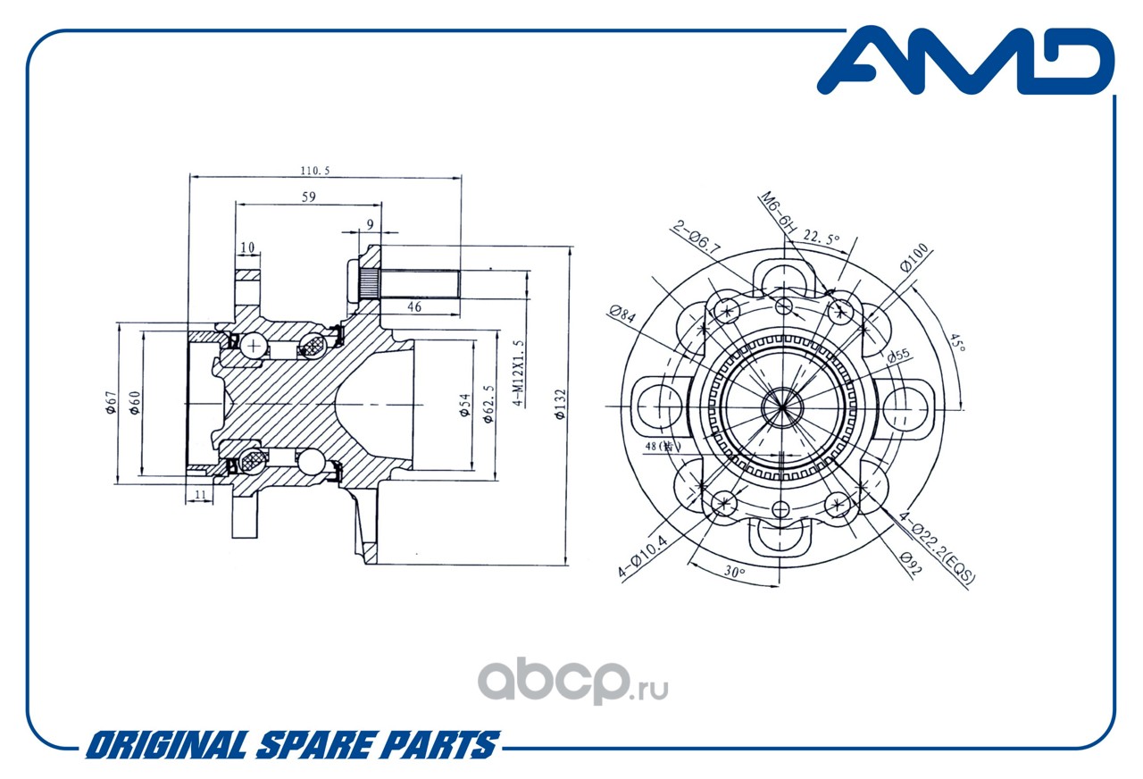 Ступица задняя 52750-0U000/AMD.HUB47 (D132; ABS) AMD