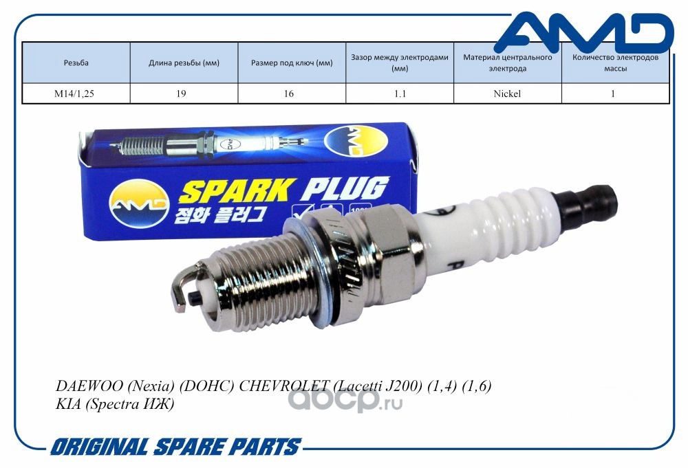 Свеча зажигания 96130723/BKR6E-11/AMD.PL33 (Nickel) AMD