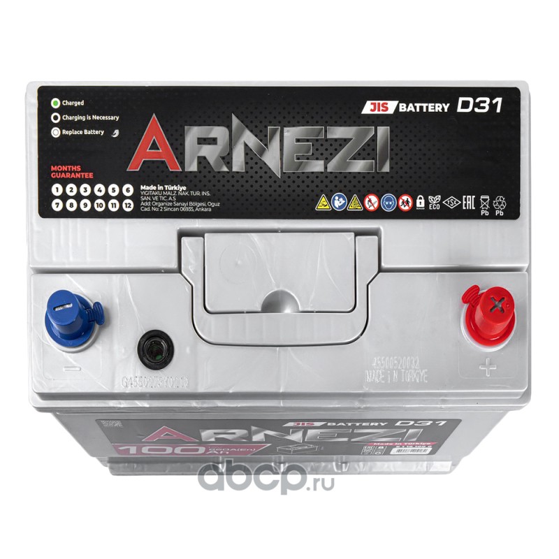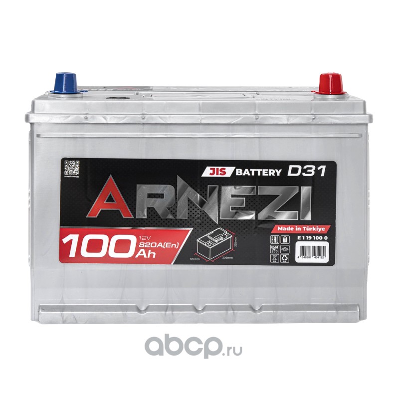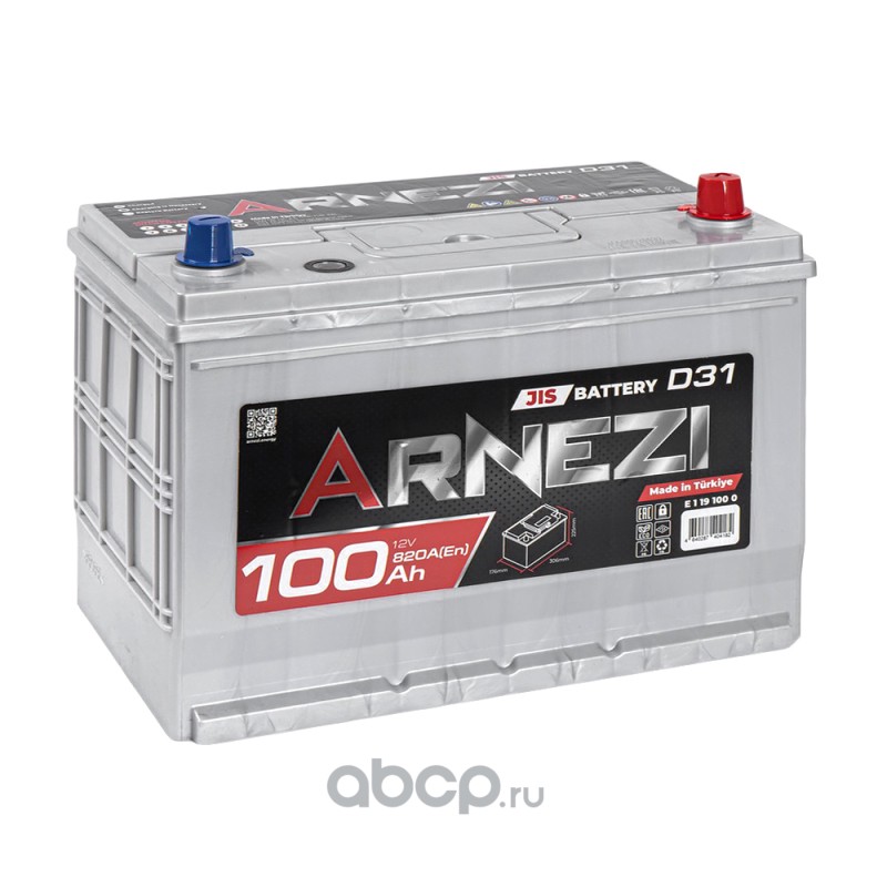 Аккумулятор ARNEZI JIS SMF 100 А/ч обратный R+ 306x176x225 D31 EN 820 А