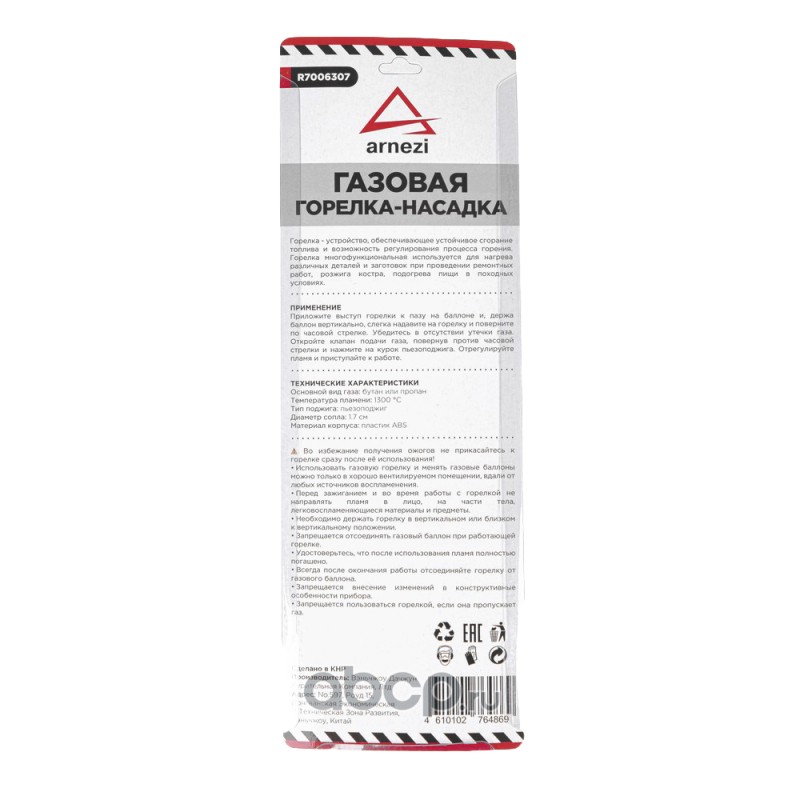 Газовая горелка-насадка с пьезоподжигом на цанговый баллон гибкий носик