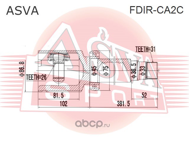 ШРУС ВНУТРЕННИЙ ЛЕВЫЙ 26X36X31