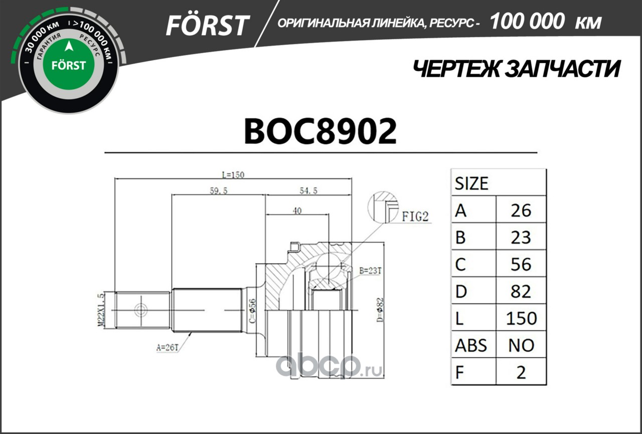 Шрус TOYOTA Corolla (-02), Carina (87-) (наруж.) [26/23] (BOC8902) B-RING FÖRST