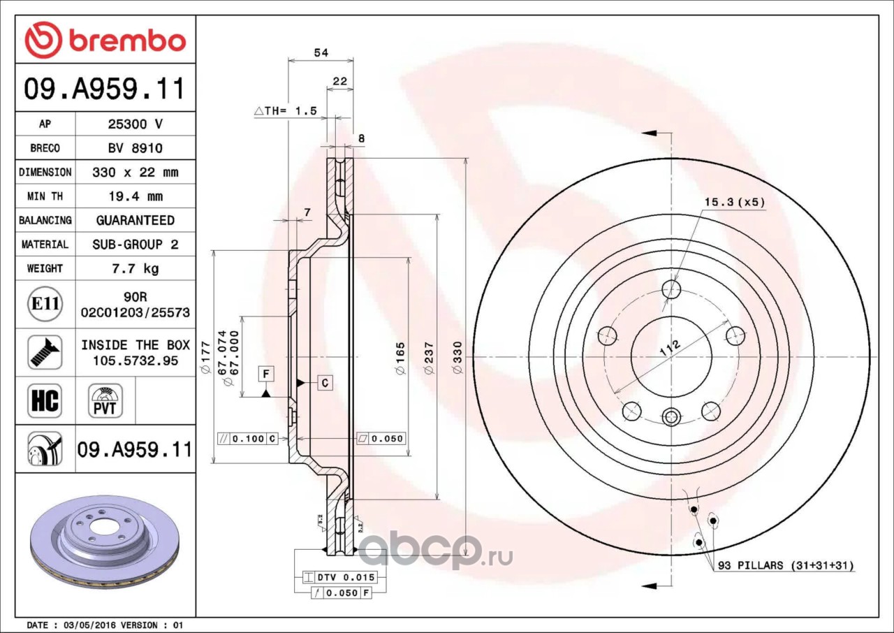 Тормозной диск , крашенный , вентилируемый с технологией PVT