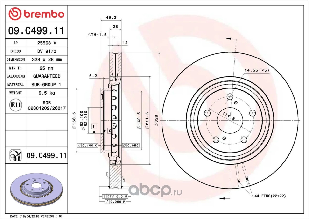 Тормозной диск , крашенный, вентилируемый