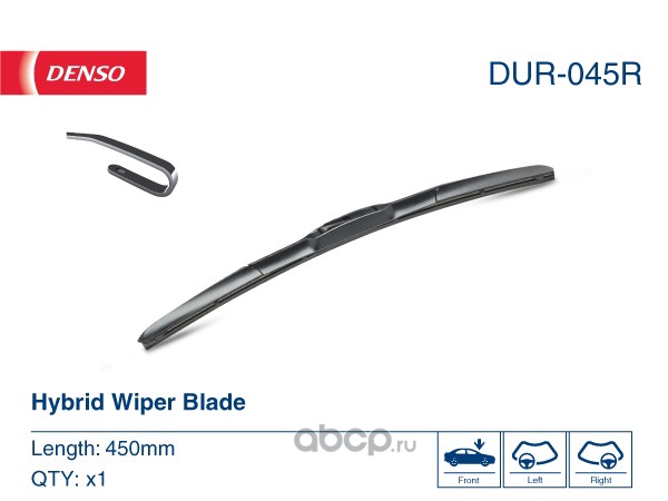 ДЕТАЛИУС | D911003 | Комплект гибридных щеток стеклоочистителя 650 mm + 450 mm (Тип адаптера - Крючок) |