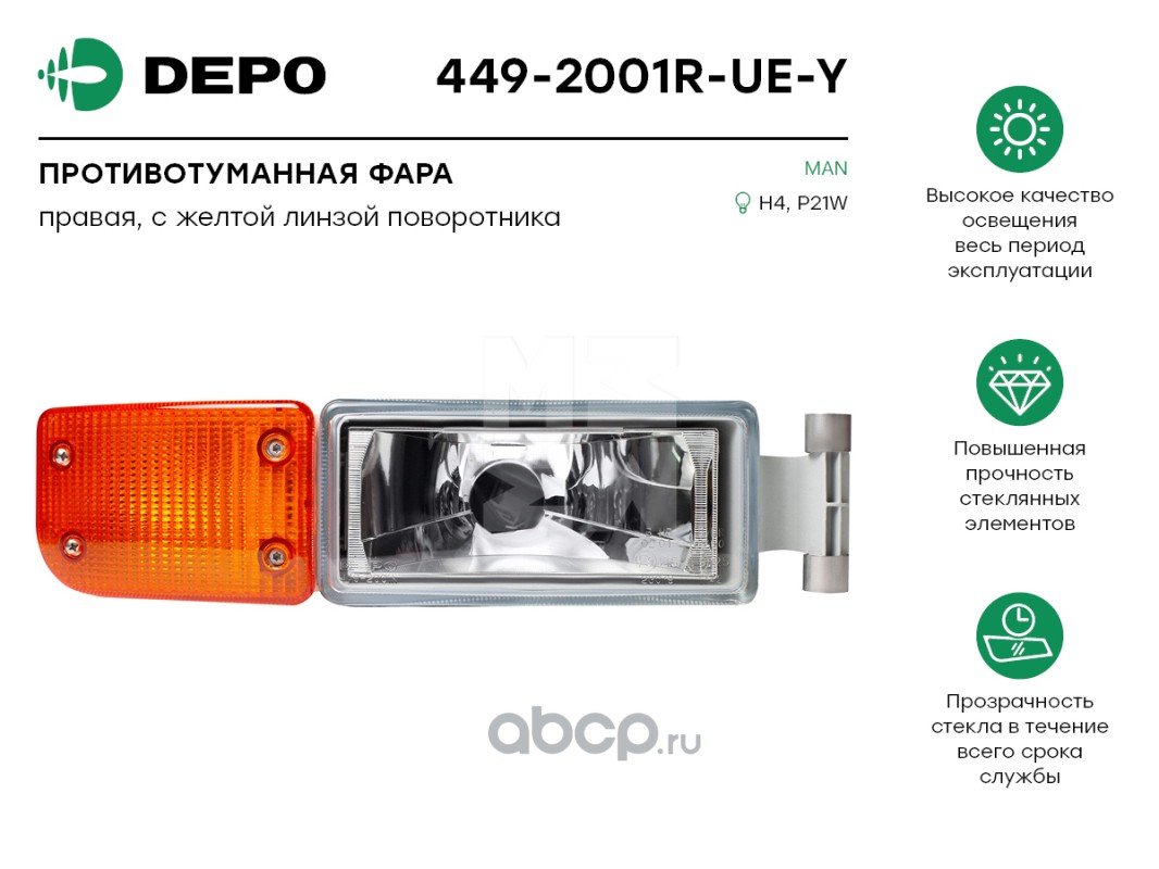 Противотуманная фара правая с желтым поворотником MAN (449-2001R-UE-Y)