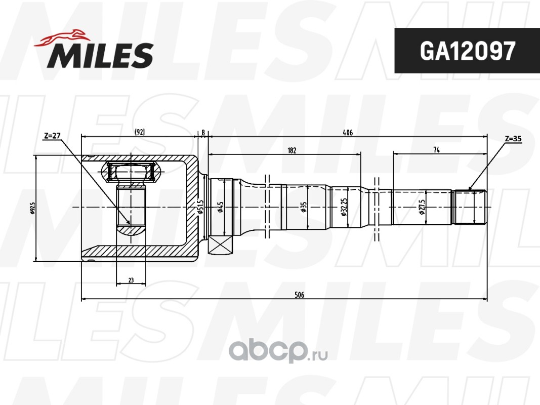 Miles | GA12097 | Шарнирный комплект, приводной вал |