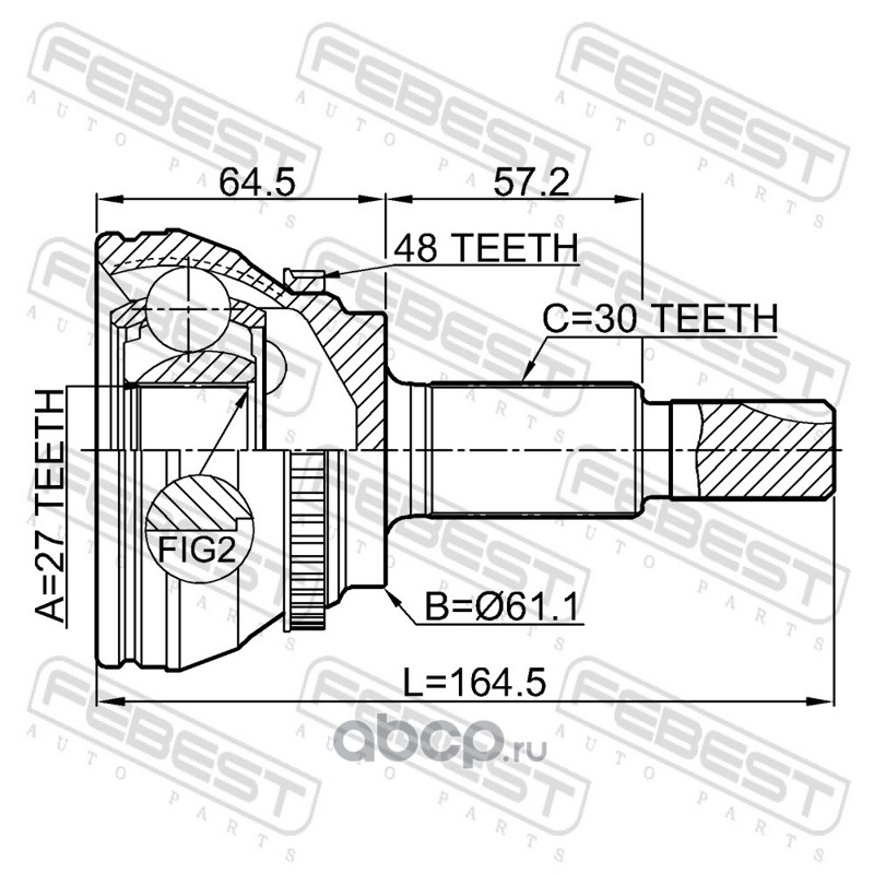 WINKOD | W2234CV | TO-344A ШРУС 30|26|61 ABS|48 (Outer) full kit |