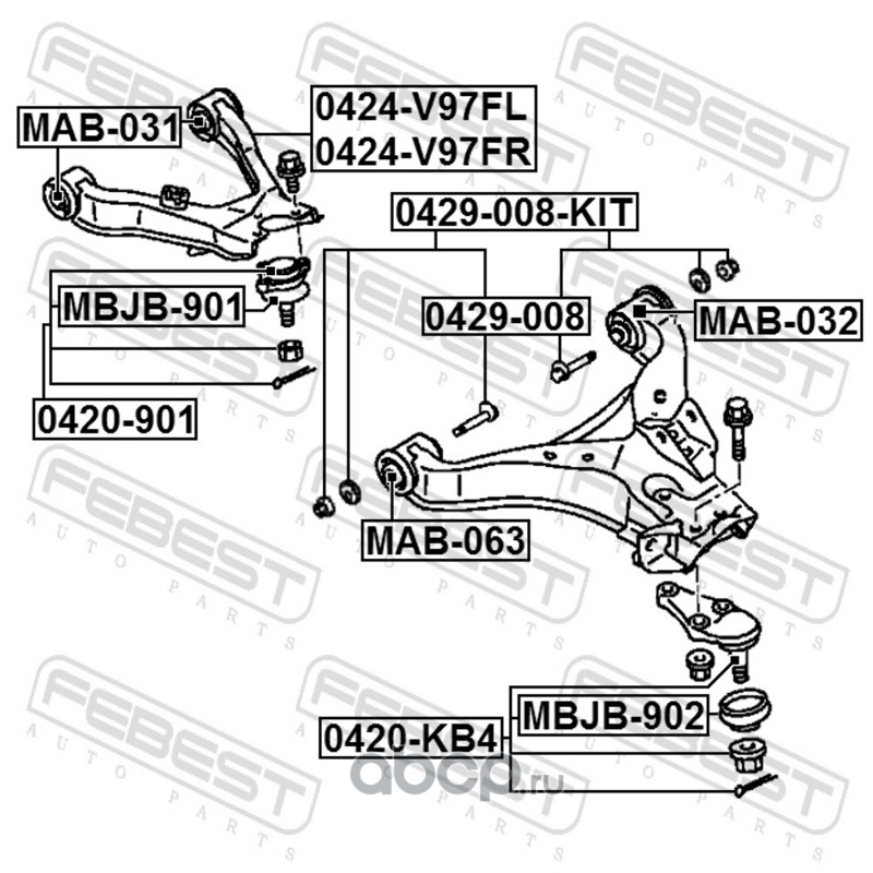 Febest | 0429005KIT | Болт с эксцентриком ремкомплект |