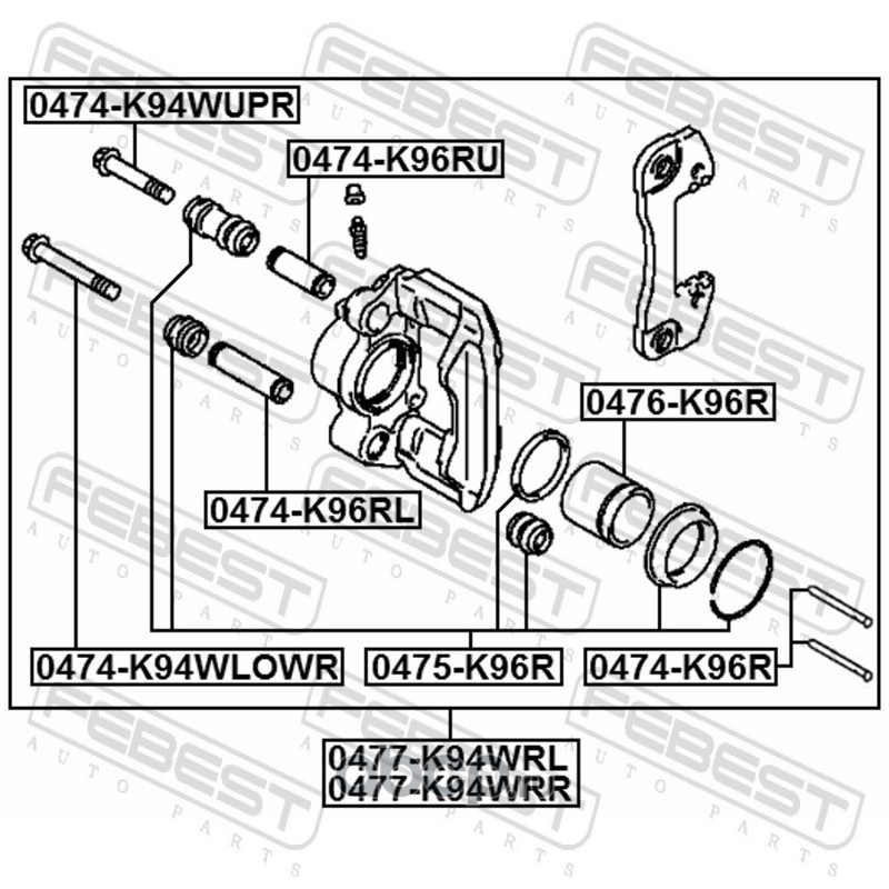 Febest | 0474K96RL | Втулка направляющая суппорта тормозного заднего |