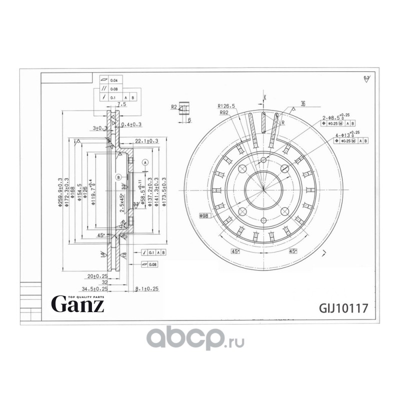 Диск тормозной передний с покрытием ВАЗ 2110, 1118, 2170, 2190 R-13
