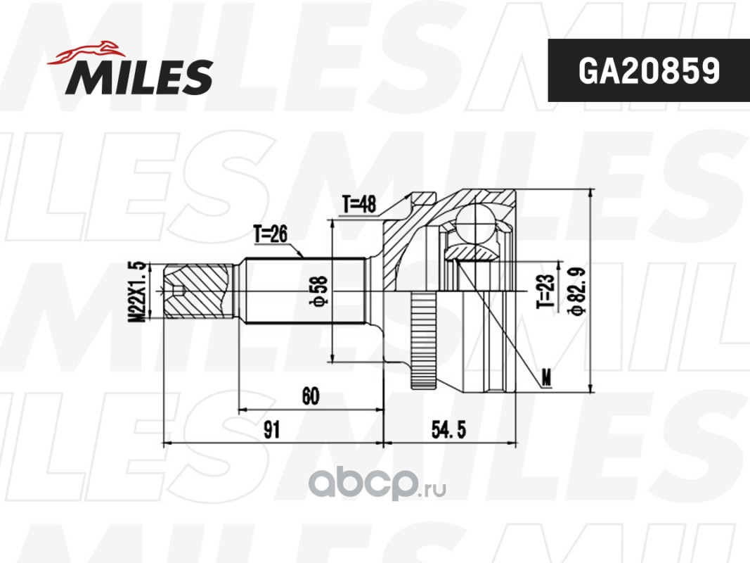 Miles | GA20859 | ШРУС Geely Emgrand EC7 FE-1/2 2009-2016 наруж.26/23 шлиц. |