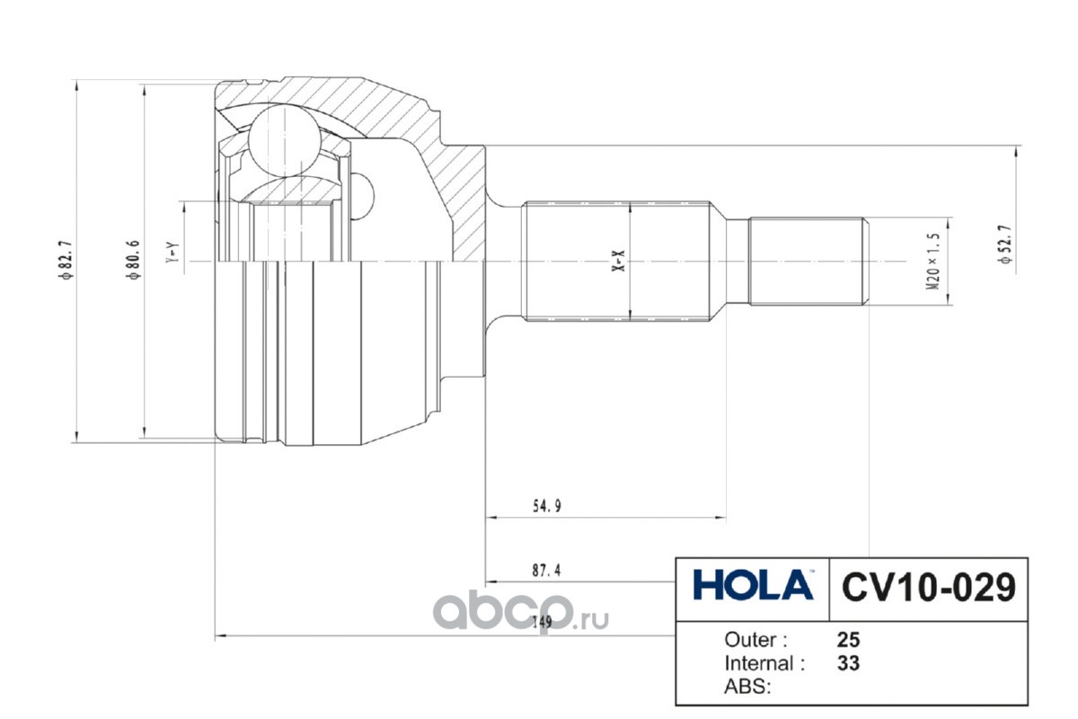 CV10-029, HOLA, ШРУС, наружный, левый/правый, 25/33 шл., RENAULT Duster (2WD), Fluence, Megane III, Scenic III; NISSAN Terrano III (2WD); DACIA Duster (2WD), (1шт.)
