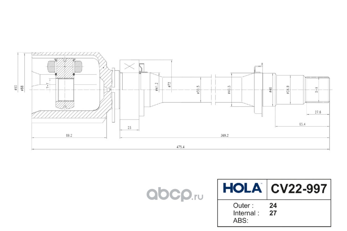 CV22-997, HOLA, ШРУС, внутренний, правый, 24/27 шл., TOYOTA Camry (V30,V40), (1шт.)