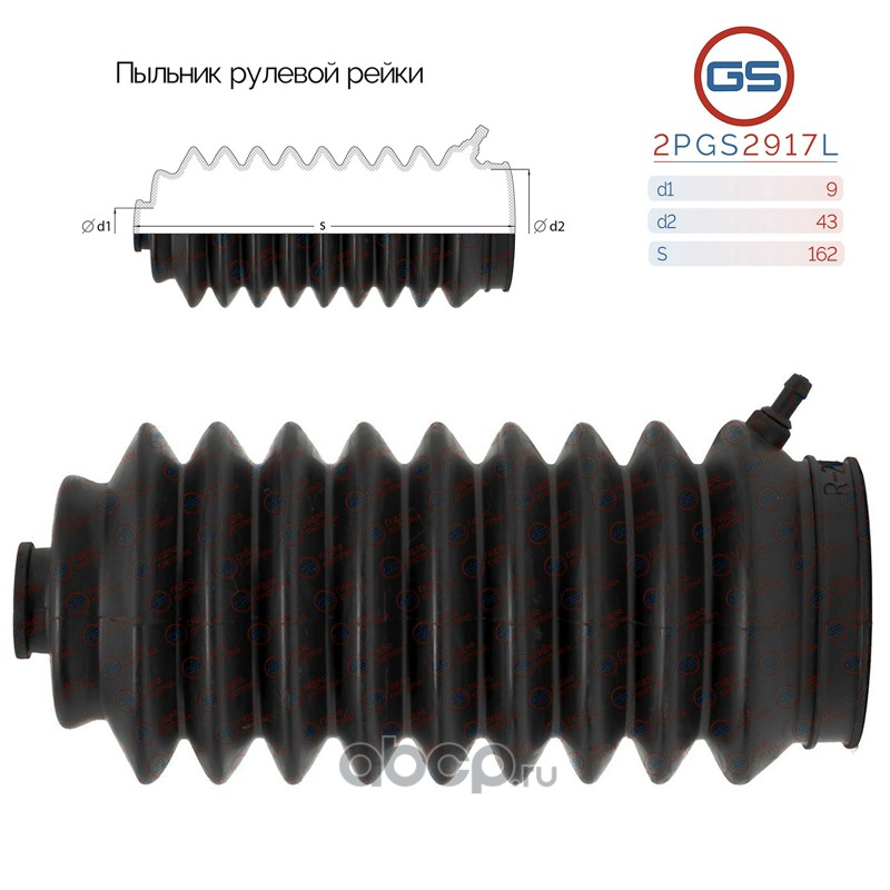 GS | 2PGS2917L | Пыльник рулевой рейки размер: 9x43x162 |