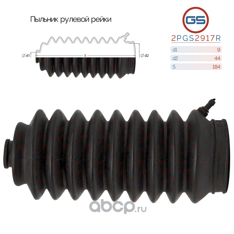 GS | 2PGS2917R | Пыльник рулевой рейки размер: 9x44x184 |