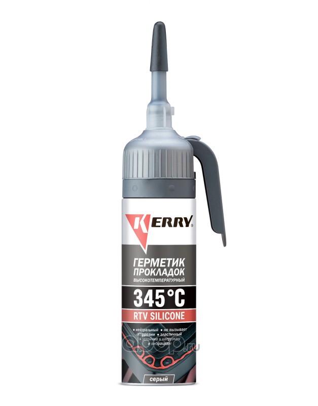 Герметик многоцелевой высокотемпературный автомобильный серый RTV KERRY® KR-143-3, 100 мл. Система автоматической подачи герметика из баллона для обеспечения максимальной точности и простоты нанесения Высокотемпературный силиконовый автомобильный герметик KERRY® KR-143-3 применяется для ремонта или формирования прокладок в узлах, подверженных воздействию высоких температур, таких как поддон картера двигателя, крышка картера/поддон КПП, корпус термостата, водяная помпа. Может наноситься на штатные прокладки для улучшения их эксплуатационных свойств (не рекомендуется для применения на головке блока цилиндров). Не содержит растворителей и кислот, не вызывает коррозиии, безопасен для кислородных датчиков. Автомобильный герметик может использоваться для герметизации электрических соединений и датчиков. Характеризуется отличной адгезией к поверхностям из металла, пластика, стекла, резины. Силиконовый автогерметик подходит для герметизации и ремонта автомобильных фар, устраняет течи через уплотнители автомобильных стёкол. Вулканизируется при комнатной температуре (RTV), образует прочную гибкую прокладку. Не растрескивается и не даёт усадку. Не разрушается под действием воды, масел, антифриза и других автомобильных технических жидкостей (за исключением бензина и ДТ). Высокая эластичность: устойчив к сжатию, растяжению, сдвигу и вибрационным нагрузкам. Широкий температурный диапазон эксплуатации от –60°C до +345°C. На 13–14 погонных метров при диаметре валика 3 мм.