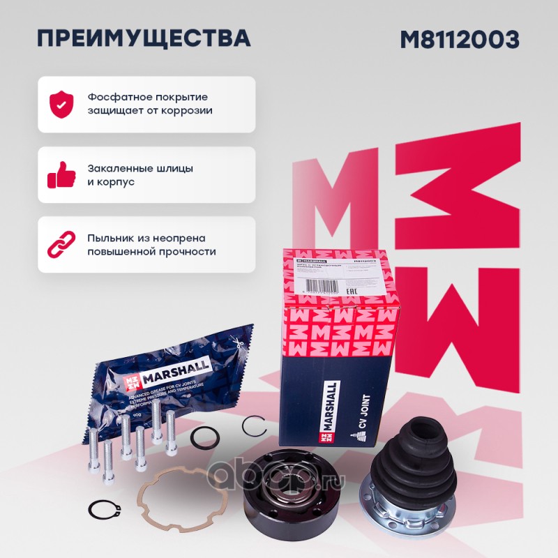 ШРУС внутр. Audi A3 (8L, 8P, 8V) 96-; Skoda Octavia I (A4), II (A5), III (A7) 96-; VW Polo V 09- (M8112003)