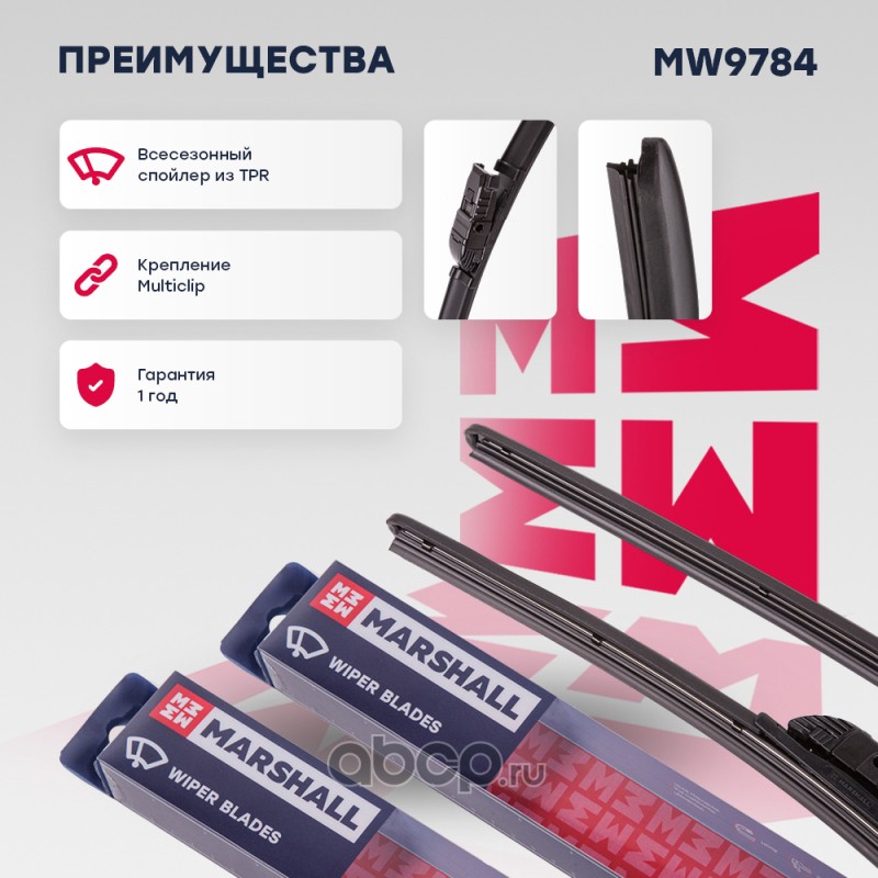 Комплект бескаркасных щеток стеклоочистителя 26” / 65 см + 17” / 43 см hook, side pin, push/pinch 19 mm (MW9784)