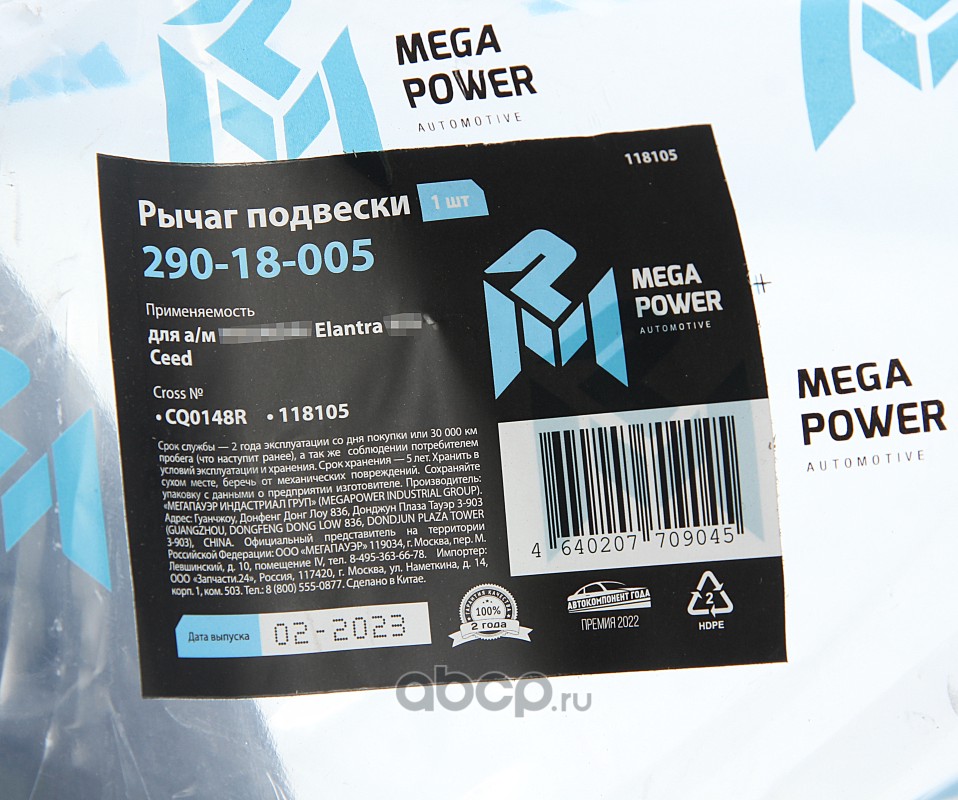 Рычаг подвески HYUNDAI Elantra KIA Ceed передней правый MEGAPOWER
