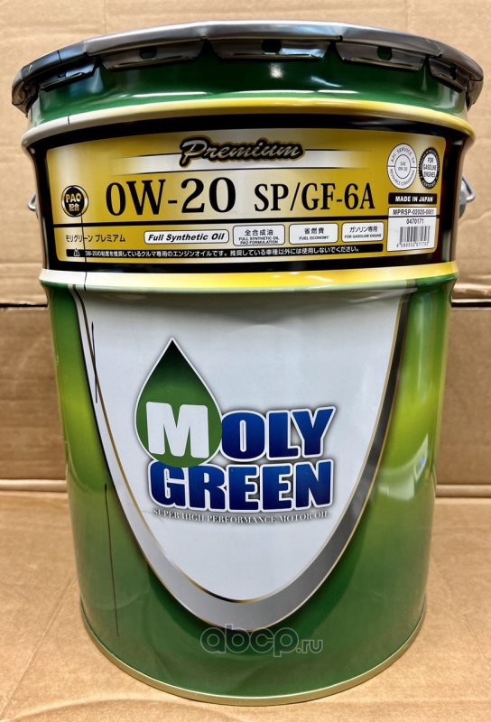 Масло моторное синтетика MOLYGREEN PREMIUM SP 0W-20 20 л.