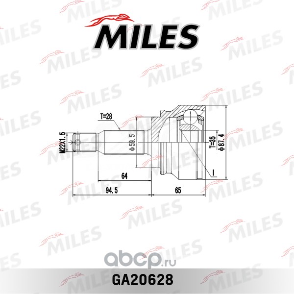 MOBILAND | 603100771 | ШРУС наружный передний для а/м MITSUBISHI LANCER VII (CS_A, CT_A), LANCER VIII (CY_A, CZ_A), ASX III (GA_W_) [без кольца ABS] |