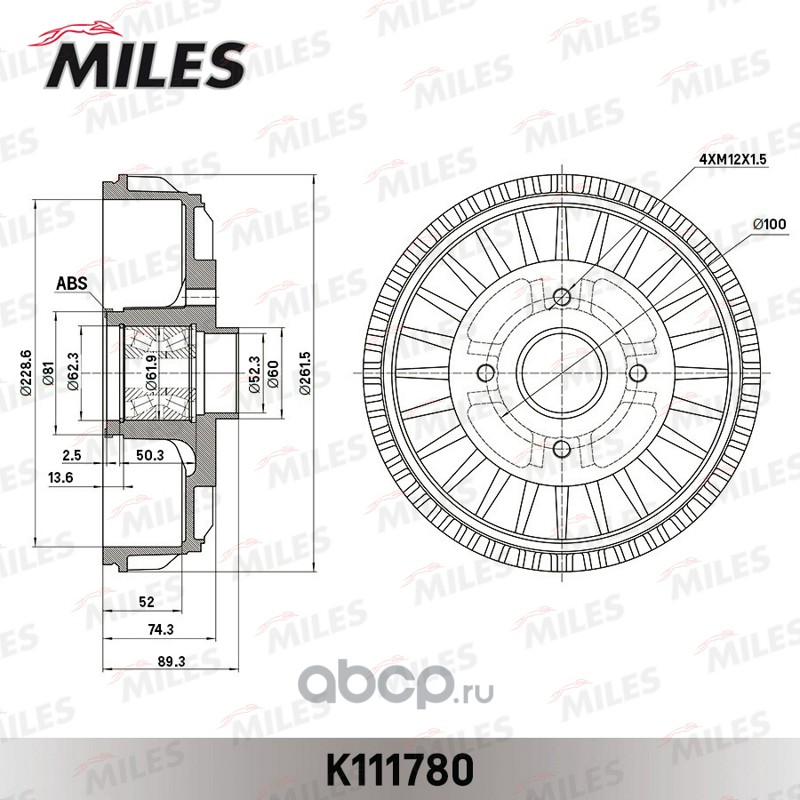 Барабан тормозной с подшипником и кольцом ABS LADA LARGUS/RENAULT DUSTER/LOGAN