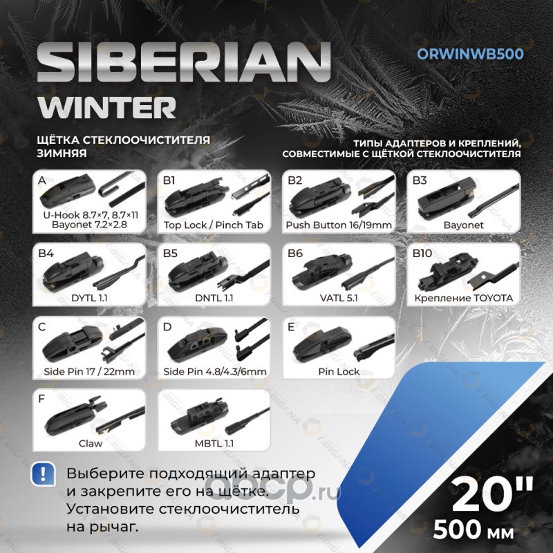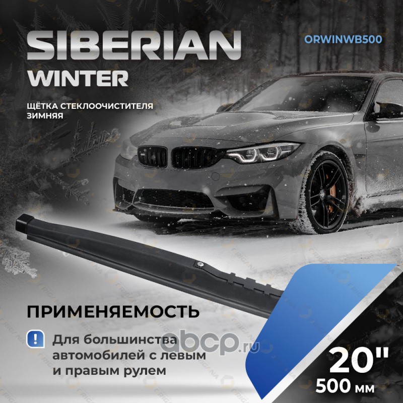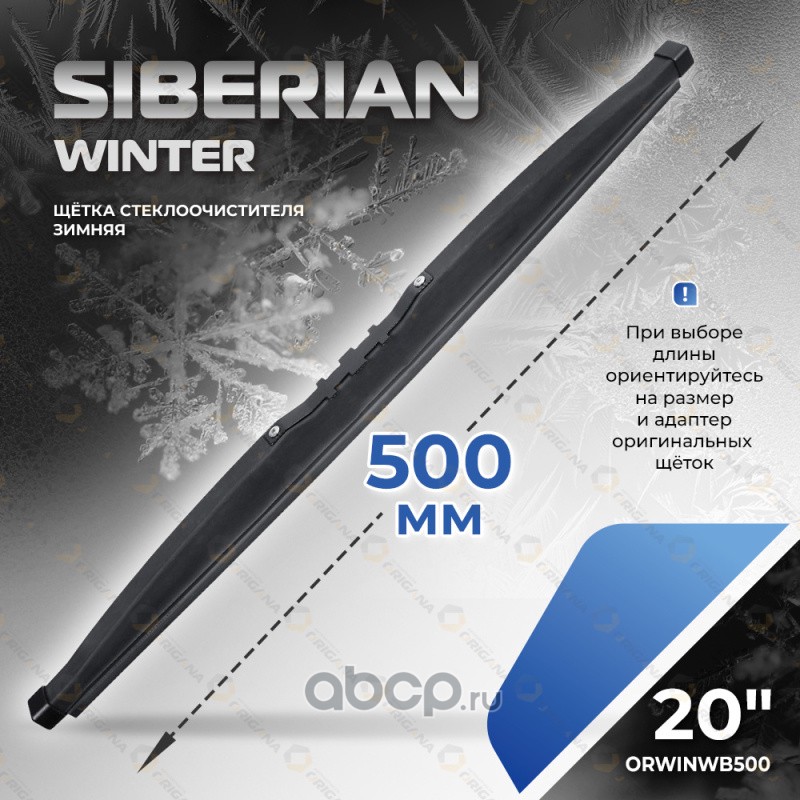 Щетка стеклоочистителя SIBERIAN WINTER ""ЗИМНЯЯ"" 20"" 500 мм для большинства автомобилей с левым и правым расположением руля (13 видов креплений) ORIGANA ORWINWB500