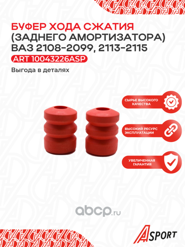 A-SPORT | 10043226ASP | Буфер (отбойник) хода сжатия заднего амортизатора для а/м ВАЗ 2108-099; 2113-15, компл. 2 шт., полиуретан, красн. |