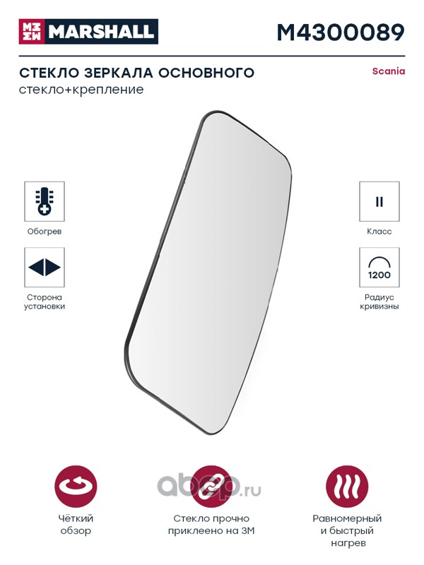 Стекло зеркала основного с подогревом правое/левое SCANIA (M4300089)