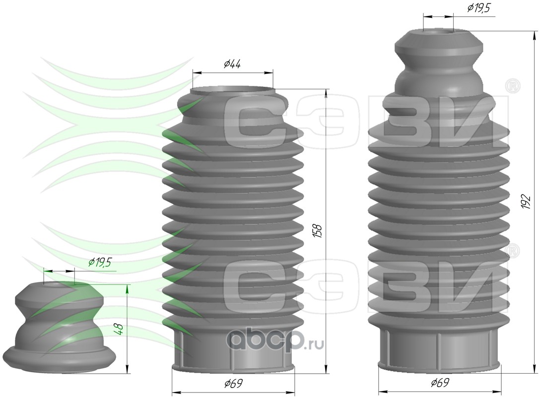 Чехол амортизатора с буфером хода сжатия универсальный (буфер h48d19,5) для передней подвески а/м DAEWOO NEXIA, CHEVROLET: LANOS, LACETTI, FORD FOCUS II полная применяемость на сайте www.sevi.ru