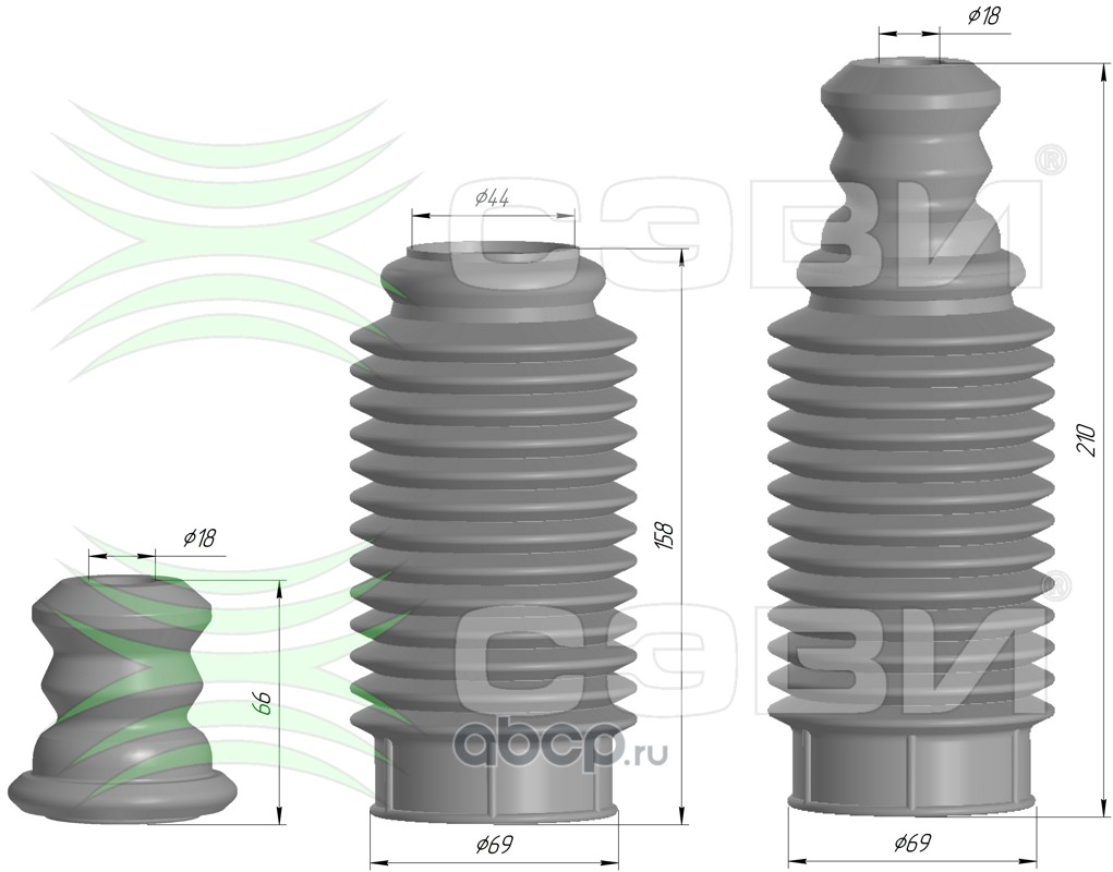 Чехол амортизатора с буфером хода сжатия универсальный (буфер h66d18) для передней подвески а/м LADA: LARGUS, XRAY, RENAULT: LOGAN, SANDERO, DUSTER, полная применяемость на сайте www.sevi.ru