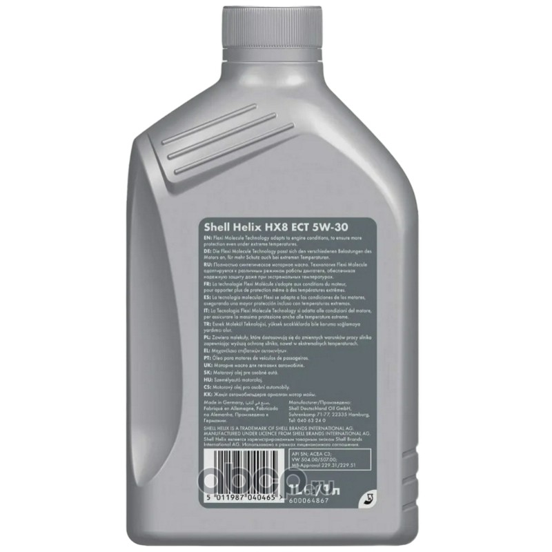 Масло моторное синтетика Shell Helix HX8 ECT 5W-30 1 л.