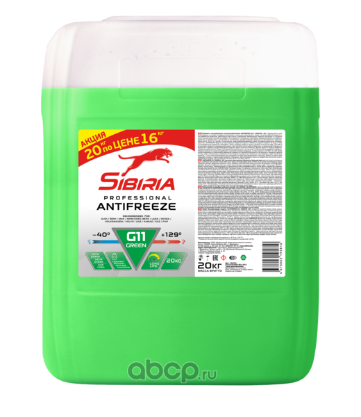 Жидкость охлаждающая низкозамерзающая ""Антифриз SIBIRIA -40"" предназначена для охлаждения двигателей внутреннего сгорания и в качестве рабочей жидкости в теплообменных агрегатах, работающих при низких и умеренных температурах. Надежно защищает от коррозии алюминиевые и другие металлические детали системы охлаждения. Применять в соответствии с инструкцией по эксплуатации автомобиля и теплообменных агрегатов. В охлаждающей системе используется в рабочем диапазоне температур от -40 °С до +129 °С.