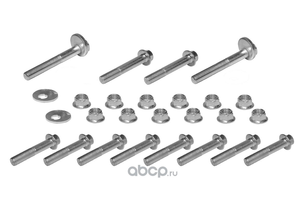 Подходит для: Ford Focus I, II, III/ Форд Фокус; Volvo C30, S40 II, V50 Ось установки: задняя Сторона установки: левая/правая Оригинальные номера: 1471995; BP4K28473A; 9YB101209; 31277305; 1357319; BP4K28500E; C2Y62846X; 98AG5K652BG Аналог: Meтzger 55005249 Комплект: M12х65 с гайками-8шт M12х75 с гайками-2шт Развальные болты с гайками-2шт (с резьбой М12х1,25 - Mazda) Развальные шайбы - 2 шт Все гайки самоконтрящиеся с фланцем.