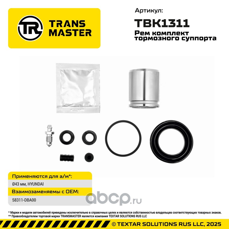 MasterKit | 77A1868 | Ремкомплект тормозного суппорта+поршень |