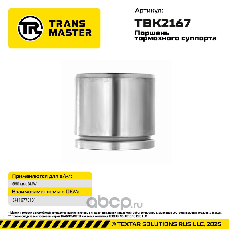 TRANSMASTER | TBK4085 | Ремкомплект тормозного суппорта с поршнем |