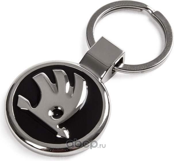 Брелок металлический с логотипом SKODA, наобратной стороне съемный жетон