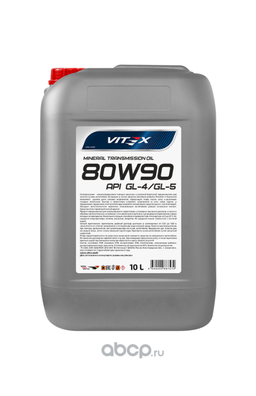 Универсальное всесезонное трансмиссионное масло на минеральной основе. Предназначено для применения в механических трансмиссиях, таких как: ведущие мосты с различными типами передач, механические коробки передач, раздаточные коробки грузовых и легковых автомобилей, автобусов и полноприводных автомобилей, где предписан смазочный материал 80W-90 GL-4 или GL-5. Обладает высокой устойчивостью к окислению, обеспечивает отличную защиту от износа и коррозии. Снижает уровень шума и вибрации. Совместимо со стандартными материалами уплотнений.Specifications: API GL-4/GL-5Conforms to requirements: MIL-L-2105, MB 235.0, ZF TE-ML 02B, 05A, 12M, 16B, 17H, 19B, 21AУПАКОВКАМасло 80W90 API API GL-4/GL-5 выпускается:в полиэтиленовой канистре 1 л - артикул v316301в полиэтиленовой канистре 5 л - артикул v316204в полиэтиленовой канистре 10 л - артикул v316105в бочке 200 л - артикул v3160b1